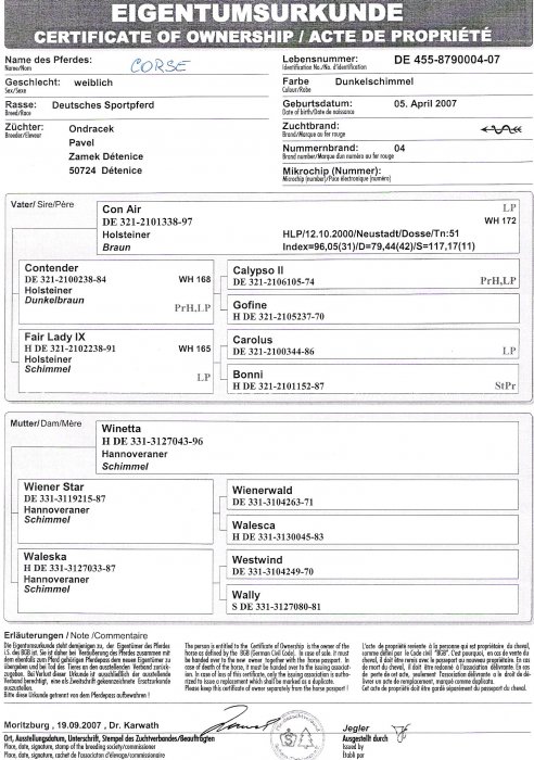 | Race | Deutsches Sportpferde |